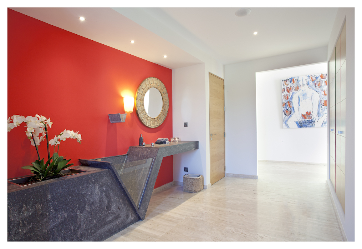Spanning three levels, the villa comprises five bedrooms, a study, and generous living and entertaining spaces. The layout includes six bathrooms, three of which are en suite, ensuring comfort and privacy for family and guests alike. Details such a underfloor heating and a welcoming wood-burning fireplace add both character and warmth.