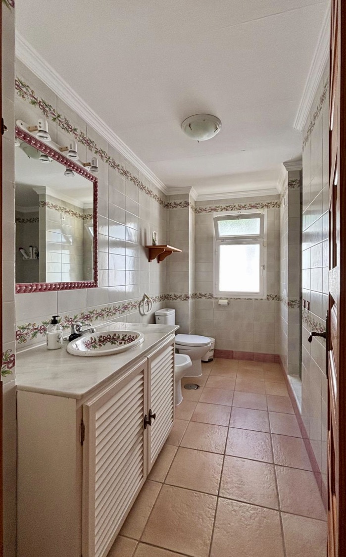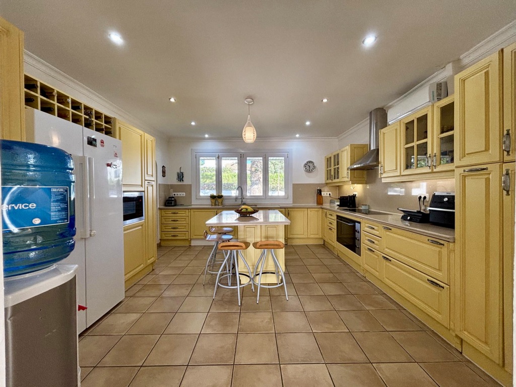The villa offers six bright and spacious bedrooms and five bathrooms, distributed across two levels, providing flexibility for family living or entertaining guests. There is also a separate guest apartment, ideal for visitors or independent accommodation.